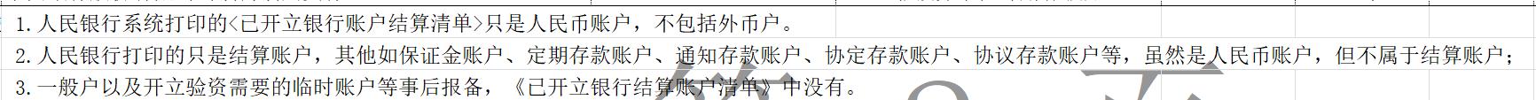 将已开立银行结算账户清单与银行存款明细表进行核对,开立清单上有明细账上没有的或者明细账上有而开立清单上没有的要查明原因。